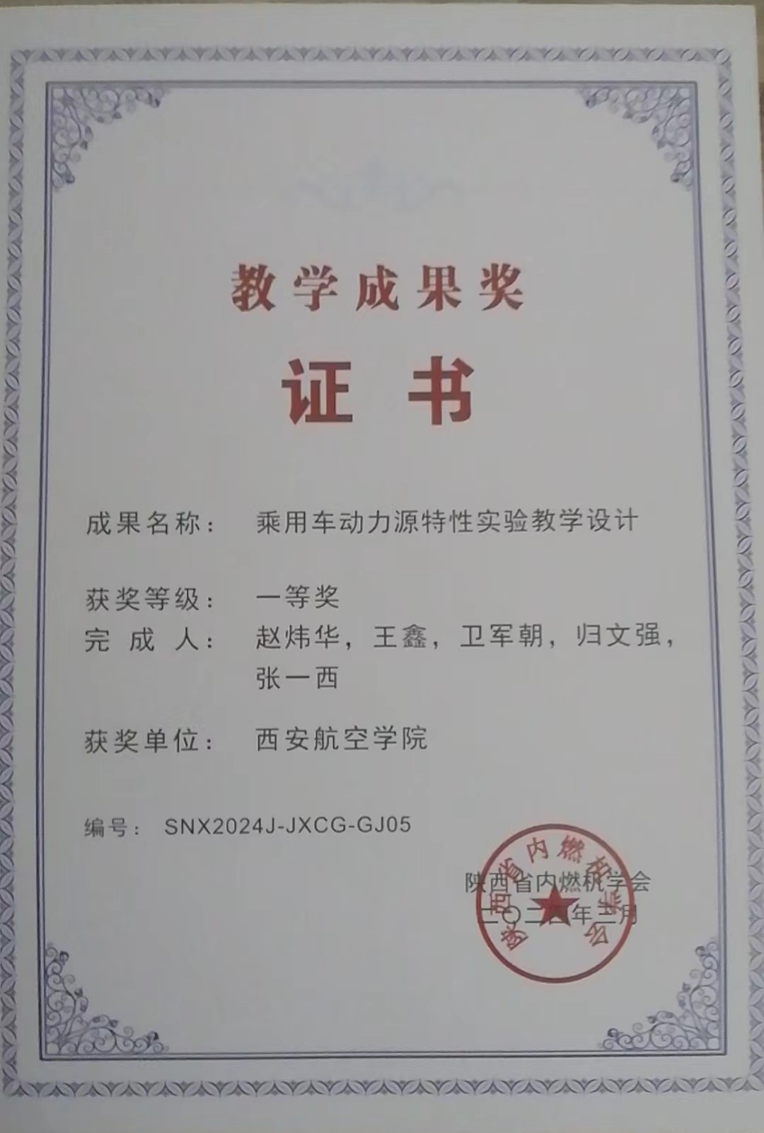 万博官网荣获陕西省内燃机学会教学成果...