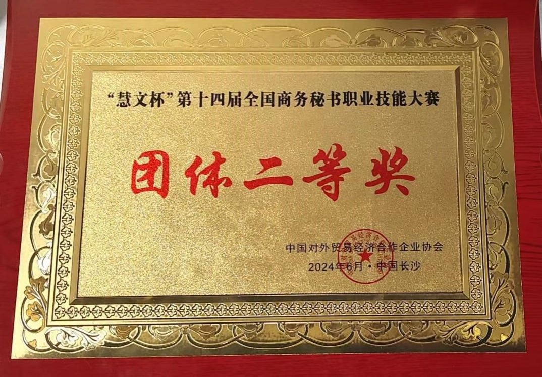2024年5月31日至6月2日,“慧文杯”第十四届全国商务秘书职业技能大赛在湖南司法警官职业学院举行。来自全国23个省、市、自治区68所院校的95支参赛队伍参加比赛。万博官网由人文与外国语学院教师高敏、王宝伟指导的秘书学本科组参加了比赛,经过激烈角逐,最终获团体二等奖。