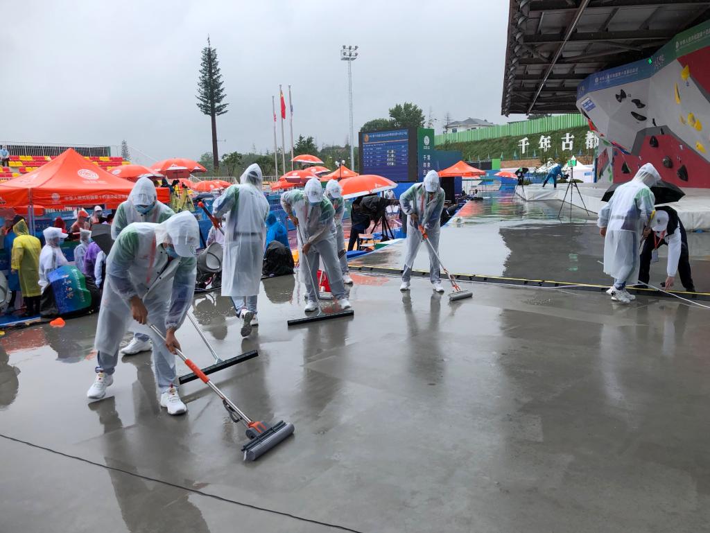 风雨无阻,服务攀岩之赛。比赛期间,163名赛会志愿者服务于竞赛组织、观众服务、媒体转播等10个处室共27个岗位的工作任务,累计志愿服务总时长达6520小时,平均每位志愿者每日服务时长超10小时,其中,保障场地环境的志愿者们单日服务时长超17个小时。