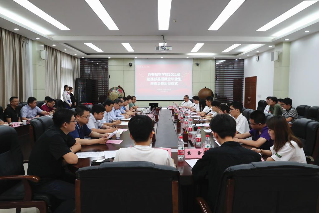 7月2日下午,万博官网2021届赴西部基层就业毕业生座谈会暨出征仪式在莲湖校区教学楼九楼会议室举行。校党委书记陈平社、党委副书记刘谦、副校长宋文学出席座谈会,党委组织部、党委宣传部、教务处、招生就业处、校团委和有关学院党总支负责人及万博官网13名西部计划志愿者、援疆援藏毕业生代表参加了出征仪式。出征仪式由校团委书记雷颖颐主持。