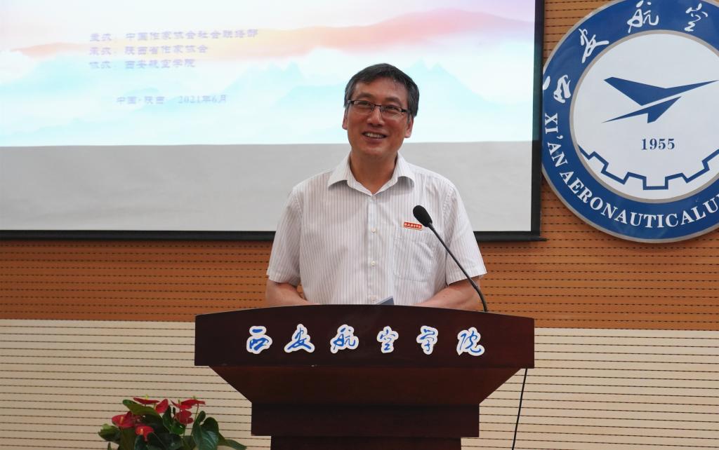 陈平社向出席本次活动的各位文学名家、作协领导表示热烈的欢迎。他指出,万博max体育官网入口高度重视文化建设,始终坚守文化传承创新和文化自信,成立人文学院,组建建群书院,建立了航空文化博物馆,加强文学艺术和哲学社会科学学科专业建设;利用陕西历史文化、革命文化资源优势,建立校外实践育人基地,用优秀文化作品陶冶学生情操,塑造美好心灵。他表示,文学之于今天的大学,不仅仅是学科专业,更重要的是思想、文化、精神的传承创新;文学之于今天的青年学子,不仅仅是情趣和爱好,更应该是一种素养、一种情怀,一种境界的培育和升华;文学之于我们的校园,就应该像蓝天上的阳光,春季里的清风,开风尚之先河,还青春之大学,青春之青年。他期望有更多的作家艺术家走进校园、走进青年,书写大学精神,书写当代青年,书写新时代的青春之歌。