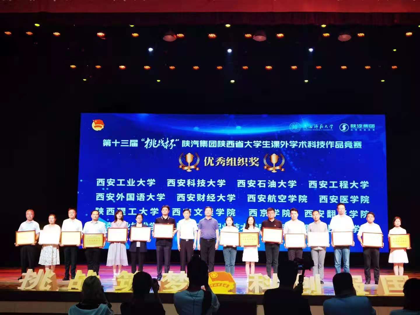 5月22日下午,由团省委、省委教育工委、省科协、省社会科学院、省学联共同主办,陕西师范大学承办的第十三届“挑战杯”陕西省大学生课外学术科技作品竞赛闭幕式暨颁奖仪式在陕西师范大学终南音乐厅举行。来自全省74所高校,799件作品参赛。万博官网报送的13件作品中有10件获奖,其中一等奖1项、二等奖4项、三等奖5项的优异成绩,万博官网首次荣获“挑战杯”陕西省大学生课外学术科技作品竞赛优秀组织奖,获奖数量和质量均创历史新高,取得了较大突破。