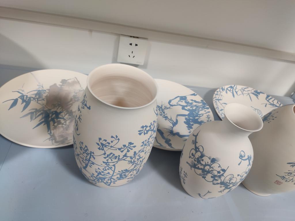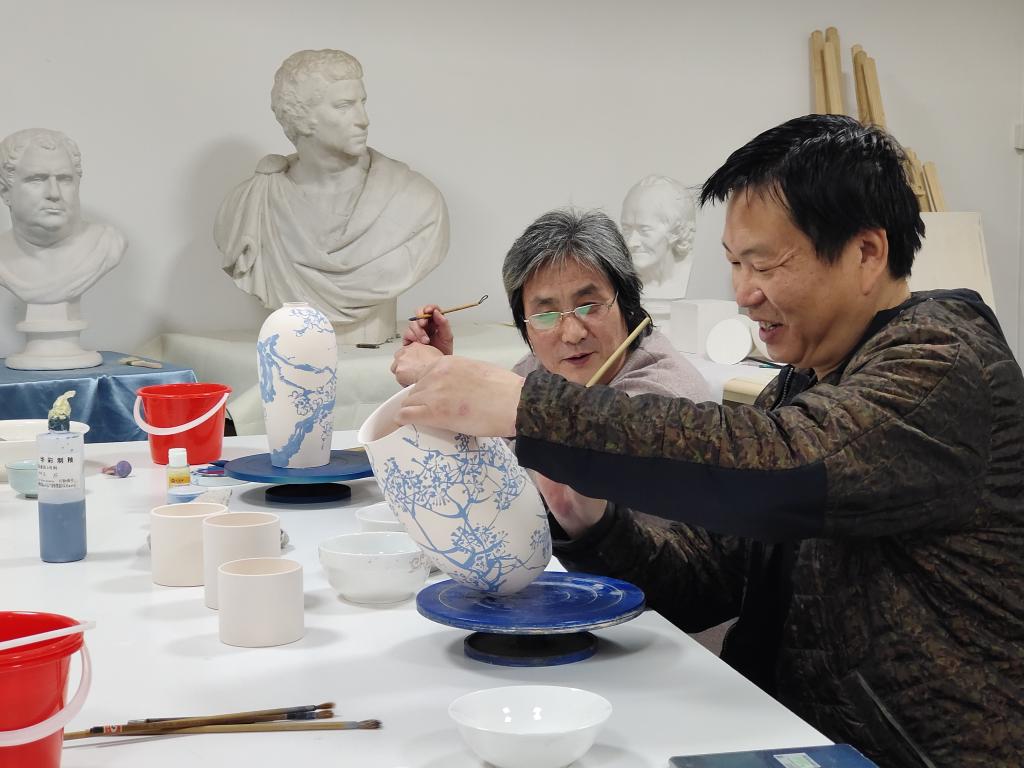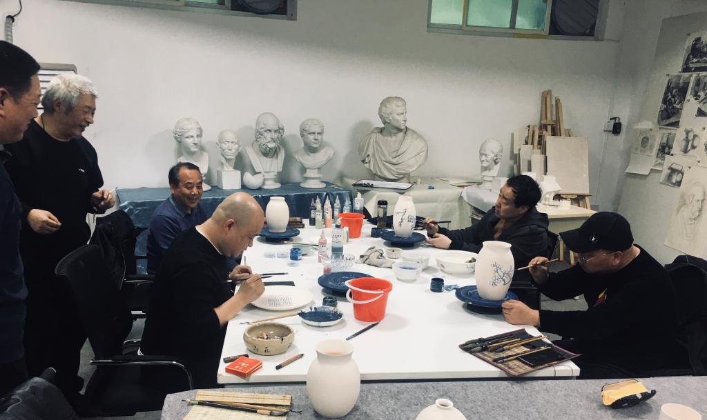交流中,各位书画家们以扎实的艺术功底及创作激情进行创作,书画家们神采飞扬,他们以瓷当纸,精心构思,细心绘制,佳作迭出。