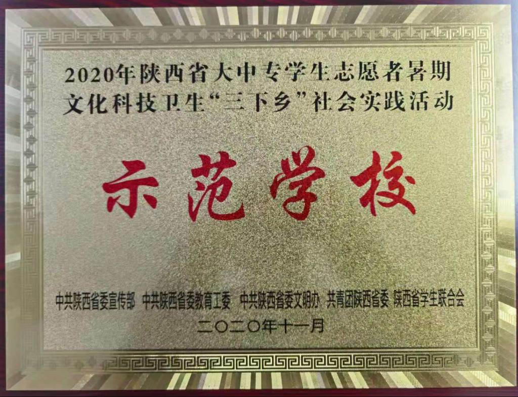 优化顶层设计,广泛开展社会实践。学校建有社会实践基地24个,资助重点社会实践队125支,开展脱贫攻坚专项行动14次。多次荣获团中央暑期社会实践专项活动“优秀组织单位”陕西省大中专学生“三下乡”社会实践活动“省级示范学校”“优秀组织单位”陕西省脱贫攻坚先进单位“万名学子扶千村”扶贫攻坚先进高校等荣誉称号。1名教师荣获国家级社会实践优秀个人,1支队伍荣获“省级标兵团队”,12支队伍荣获“省级优秀团队”。