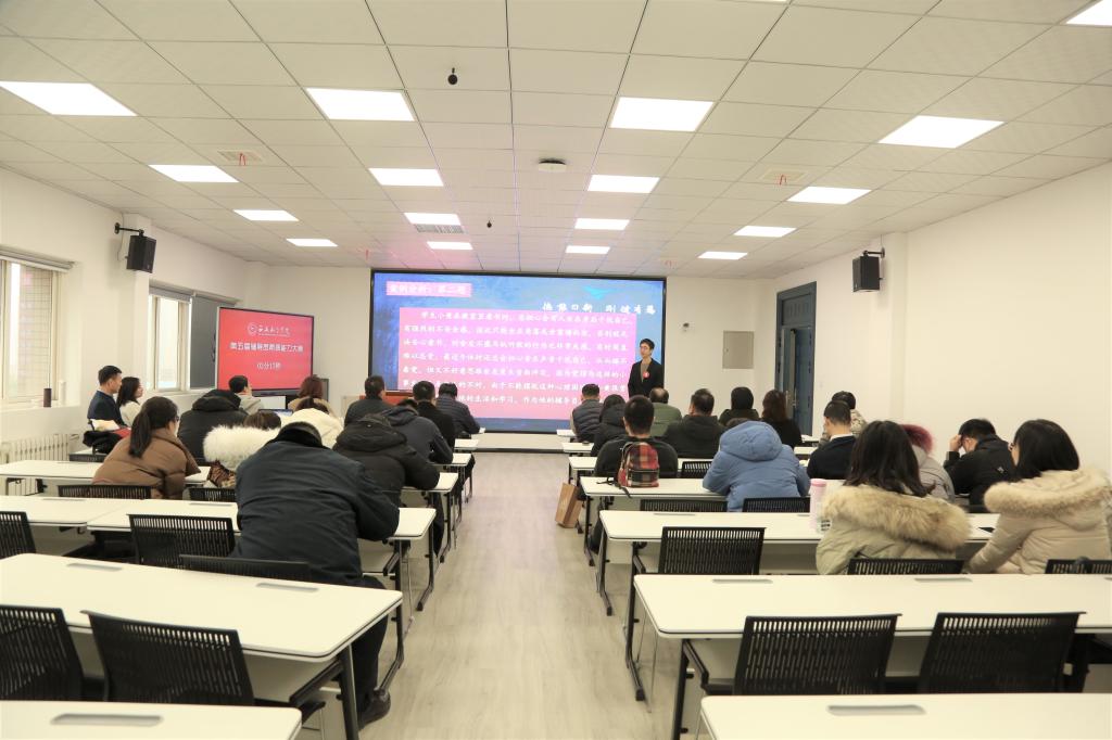 陈平社作总结讲话,他强调,辅导员是学校高素质专业化教师队伍的重要组成部分,是学校履行立德树人根本任务、加强学生思想政治教育的骨干力量,岗位重要,使命光荣。他要求,把学习贯彻党的十九届五中全会精神作为重要的政治任务,结合辅导员工作抓好落实。面对新的发展征程和新的发展格局,落实立德树人要求,践行铸魂育人使命,全体辅导员要增强政治定力,清醒认识辅导员岗位的政治属性、政治责任、政治担当;着力提升学习力、组织力、创新力;围绕学生、关照学生、服务学生,践行关心、关爱、关怀的“三关”要求。最后,他勉励辅导员再接再厉,为学生成长成才和学校“十四五”事业发展做出新的更大贡献。