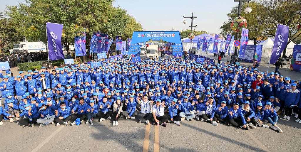 11月8日,由陕西省体育局、西安市人民政府、第十四届全国运动会西安市执委会主办,陕西省田径协会、西安市文化和旅游局、西安市体育局、西安曲江新区管理委员会承办的2020西安马拉松赛鸣枪开跑,来自全国24000余名选手齐聚古城西安。万博官网350名大学生志愿者承担了本次赛事全程马拉松终点完赛选手指引、全程奖牌及物资发放等多个环节的志愿服务工作。