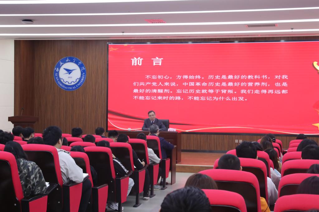 陈平社在党课中指出,在校青年学生要求加入党的组织,首先要学习党的历史,不能忘记我们党走过的路,不能忘记为什么出发。核心是解决好为什么入党,把忠诚二字铭刻于心见诸于行。他强调,忠诚是党的灵魂,是共产党人最重要的政治素养,是维系党的团结统一、凝聚党的力量的生命源泉。党的组织和党员离开了忠诚,背弃了忠诚,就是对国家、民族、人民的背叛。他希望,青年学子要坚定理想信念,坚定不移听党话跟党走,自觉做共产主义远大理想和中国特色社会主义共同理想的坚定信仰者和忠实实践者。要坚定践行宗旨,时刻把祖国和人民的利益放在第一位,全心全意为人民服务,在校潜心努力学习,掌握为人民服务的本领。要勇于自我革命,加强党性修养,涵养浩然正气,勇于开展批评与自我批评,在纷繁复杂的斗争实践中健康成长。要不负时代使命,传承忠诚奉献、逐梦蓝天的航空报国精神,不负韶华,只争朝夕,努力做能够担当民族复兴大任的时代新人。