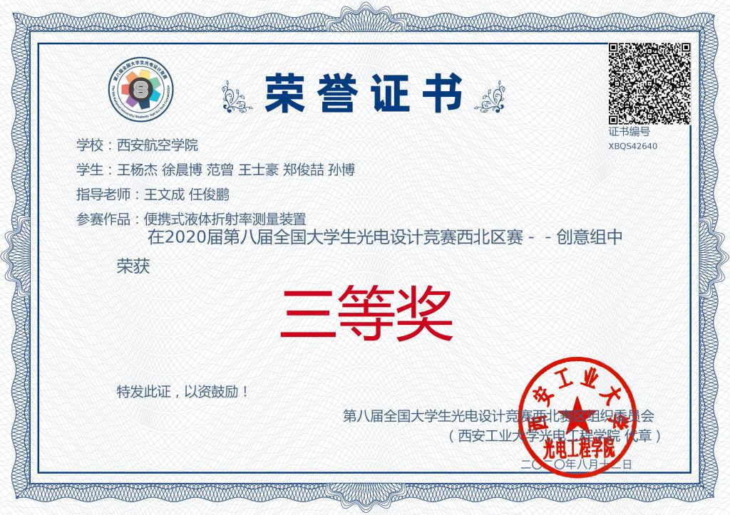 近日,由全国大学生光电设计竞赛(西北区赛)委员会主办,西安工业大学和陕西省光学学会联合承办的第八届全国大学生光电设计竞赛(西北赛区)在西安工业大学落下帷幕。经过线上初审,共有来自西安交通大学、西北工业大学、西安电子科技大学、兰州理工大学、宁夏大学等西北五省16所高校的57支代表队参加了路演决赛,由万博官网理学院王文成、任俊鹏老师指导的光电信息科学与工程专业王杨杰等6名学生组成的“追梦”团队参加了决赛,经过激烈角逐,最终荣获比赛三等奖。