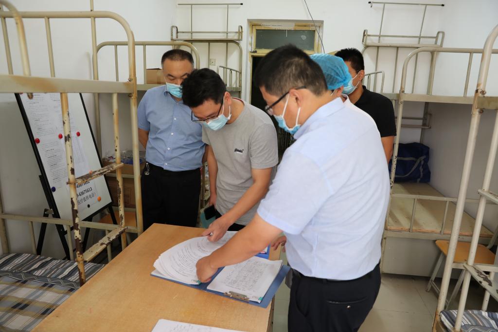 曹庆年向检查组汇报了学校疫情防控、开学准备、校园安全管理、教学安排等方面工作。检查组成员实地查看了校园门禁、校医院、学生宿舍、食堂等重点部位;走访了解学校在校园人员出入管控、食品卫生安全、发热应急处置、防疫物资储备等方面的工作情况,详细询问了开学前各项工作的准备情况;仔细查阅了疫情防控期间学校各项规章制度、工作流程的制定及执行情况。