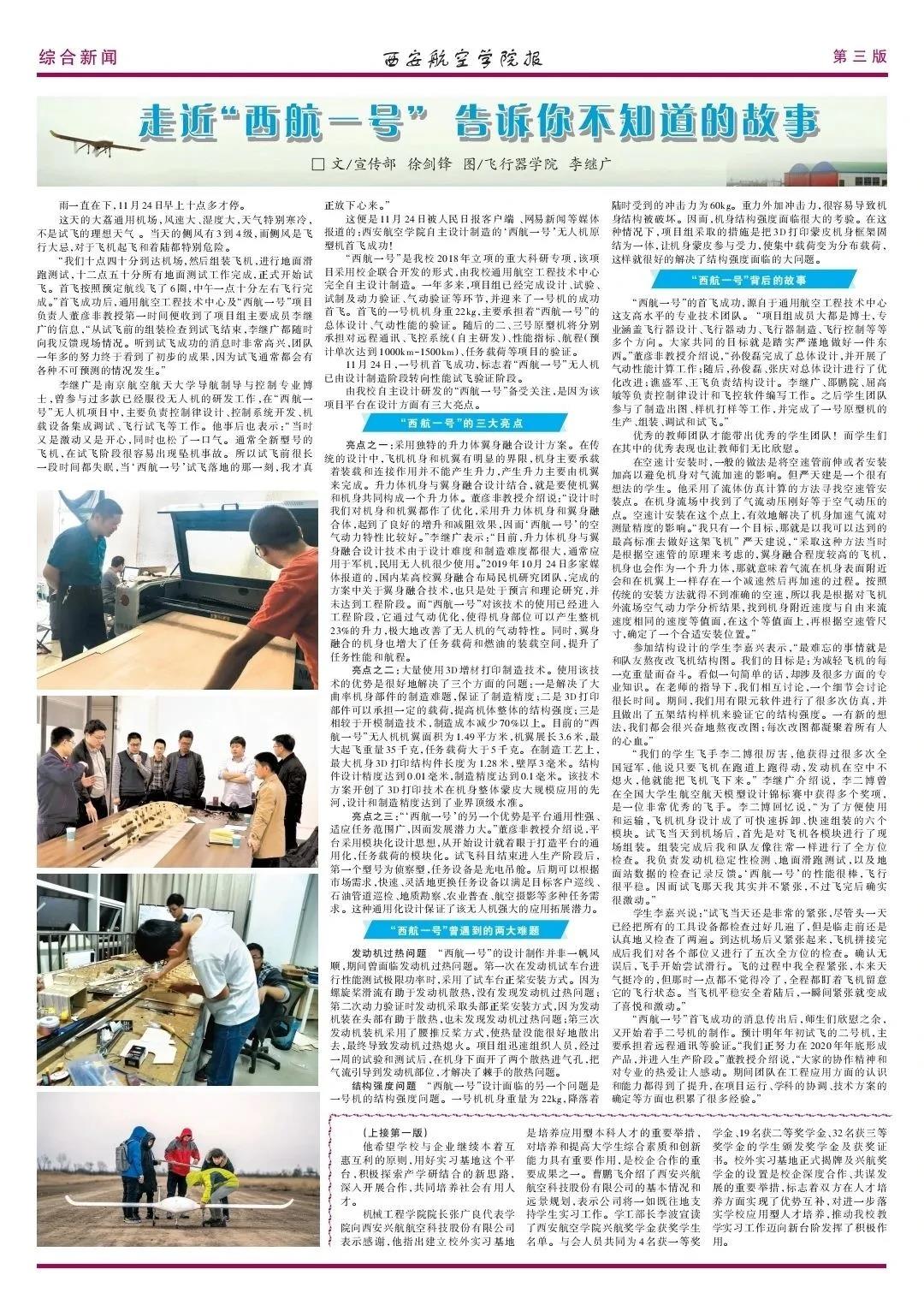 据悉,在2019年度陕西新闻奖作品评选中,全省共有10所高校的12件作品获奖。其中西北工业大学获得一等奖一项,西北大学、陕西师范大学、西北农林科技大学和陕西铁路工程职业技术学院分别获得二等奖一项,万博官网与西安交通大学、西北大学、西北农林科技大学、西安电子科技大学、西安建筑科技大学、西安石油大学分别获得三等奖一项。万博官网的获奖作品《走进“西航一号” 告诉你不知道的故事》详细报道了万博官网2018年立项的,由通用航空工程技术中心自主设计的“西航一号”无人机原型机研发及成功首飞始末。作品重点报道了“西航一号”的“三大亮点”和“两大难题”,集中展示了万博官网师生在研发过程中的专业、严谨和奉献精神。