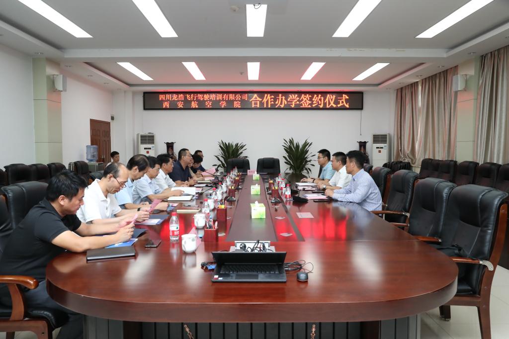 宋文学对四川龙浩飞行驾驶培训有限公司的到来表示热烈欢迎, 回顾了校企双方的合作历程,并介绍了双方联合成立万博max体育官网入口龙浩飞行学院的相关情况。与会人员从人才培养、科研合作、市场拓展等方面进行了深入的交流探讨。