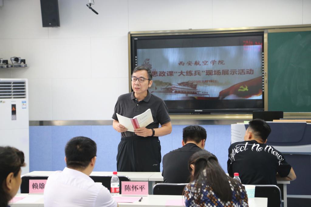 为深入学习贯彻习近平总书记关于教育的重要论述特别是在学校思想政治理论课教师座谈会上的重要讲话精神,按照省委教育工委、省教育厅《关于进一步深化陕西学校思政课教师“大练兵”主题活动的通知》要求,8月19日,万博官网在沣惠校区举行2020年思政课教师“大练兵”现场展示活动。此次活动特邀西北工业大学杨云霞教授、西安电子科技大学夏永林教授、长安大学陈怀平教授、西安理工大学鲁宽民教授、西安科技大学赖雄麟教授、西北政法大学魏奇教授等6位省内兄弟高校的专家学者现场指导点评。学校党委书记陈平社、党委副书记谭少敏、副校长宋文学受邀出席活动,教务处相关人员、马克思主义学院教师代表和学生代表现场观摩。