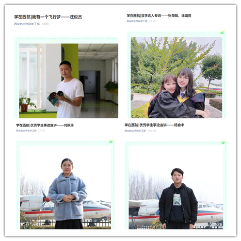 为发挥学生榜样的示范引领作用,引导和激励学生树立航空报国情怀,勤奋学习,积极创新,在德智体美劳等方面全面发展。今年学校通过“云端”采访对话、智慧课堂宣讲、微信平台展示等形式陆续推出9期优秀学生先进事迹风采,累计阅读量达到10739人次。