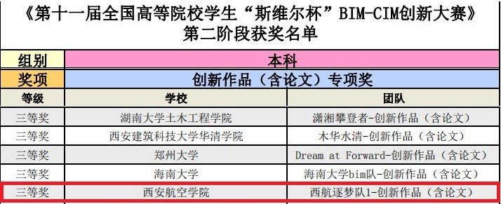 通过本次比赛,不仅使学生进一步了解行业动态及BIM技术的发展趋势,也提高了学生的创新能力及实践能力,同时也为再次参赛积累了丰富的经验。(文、图/能源与建筑学院 李妍)
