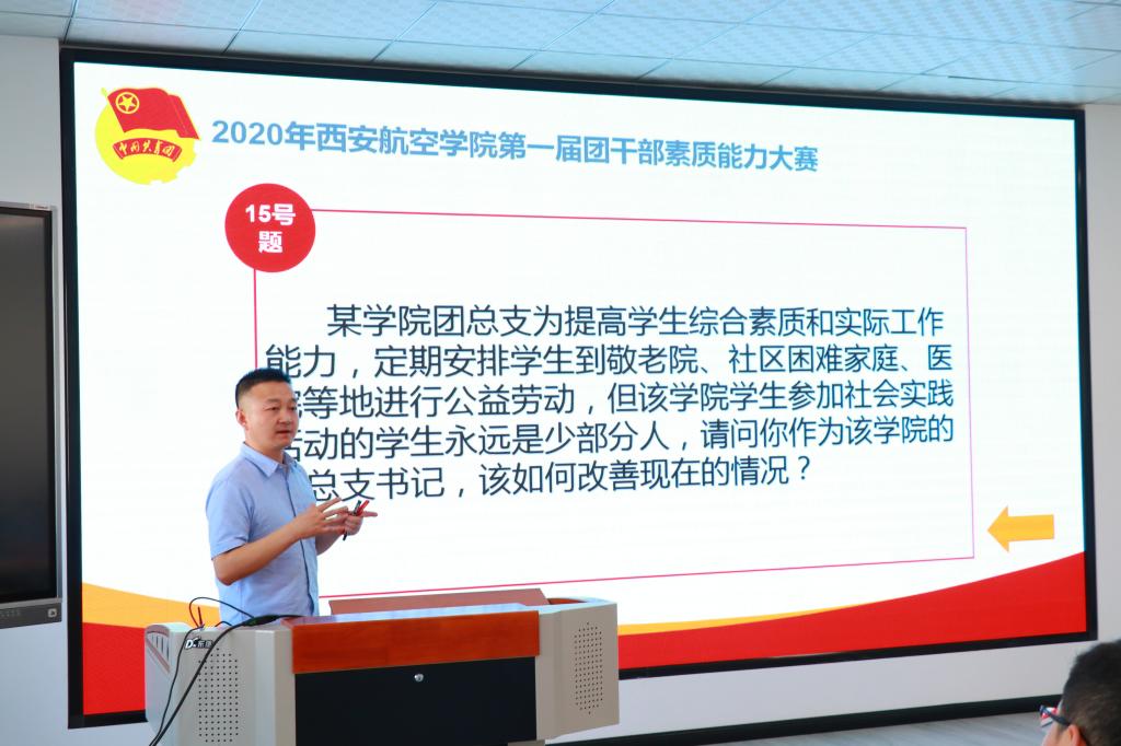 大赛分为教师组和学生组,由理论知识测试、主题团日活动视频展示、团课讲授及案例分析等四个环节组成。学校14名专兼职教师团干及286名学生团支部书记参加了此次比赛。选手们紧密结合时政热点,充分贴近青年特点,围绕习近平总书记来陕考察讲话精神、从共青团的发展历史看共产党领导的先进性、从疫情防控看制度自信、从战疫英雄看雷锋精神的传承、从5G发展看中国速度等方面讲授了一堂堂生动活泼、内涵丰富的微团课。案例分析环节内容涉及共青团基层组织建设、志愿服务、学生会改革、社团管理等贴近实际工作内容的案例,选手们以中省文件和团学工作规范为依据,联系具体工作实际进行阐述作答,既有解题思路,又有工作启示,充分展示了万博官网青年团干良好的精神风貌。