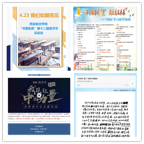 4月23日,在第25个世界读书日来临之际,万博官网“书香航苑”第十二届读书节与师生如期而见。“书香助力战‘疫’,阅读通达未来”,受疫情影响,今年读书节采用线上云启动方式开启。读者滑动指尖,轻触屏幕,点击视频和微信场景推送,即可亲自开启悦读之旅,回顾历届读书节掠影,聆听老师和同学们的心声,了解读书节期间的活动安排。