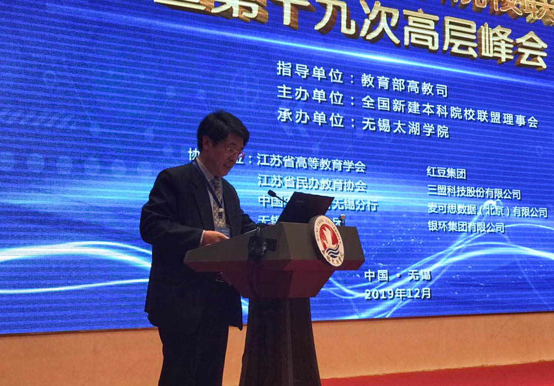 2019年全国新建本科院校联席会议暨第十九次高层峰会于12月25日至26日在江苏无锡召开。教育部二级巡视员、高等教育司综合处处长吴爱华,全国人大法律委员会元副主任委员李连宁、全国人大教科文卫委员会副主任委员王佐书、中国高教学会副会长张大良,以及来自全国280多所新建本科高校的600余名代表参加会议。校长曹庆年,科技处、教务处等人员参加了会议。