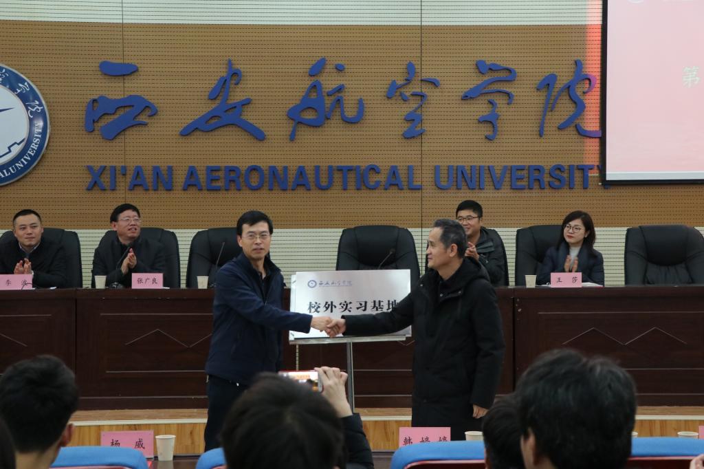 机械工程学院院长张广良代表学院向西安兴航航空科技股份有限公司表示感谢,他指出建立校外实习基地是培养应用型本科人才的重要举措,对培养和提高大学生综合素质和创新能力具有重要作用,是校企合作的重要成果之一。曹鹏飞介绍了西安兴航航空科技股份有限公司的基本情况和远景规划,表示公司将一如既往地支持学生实习工作。