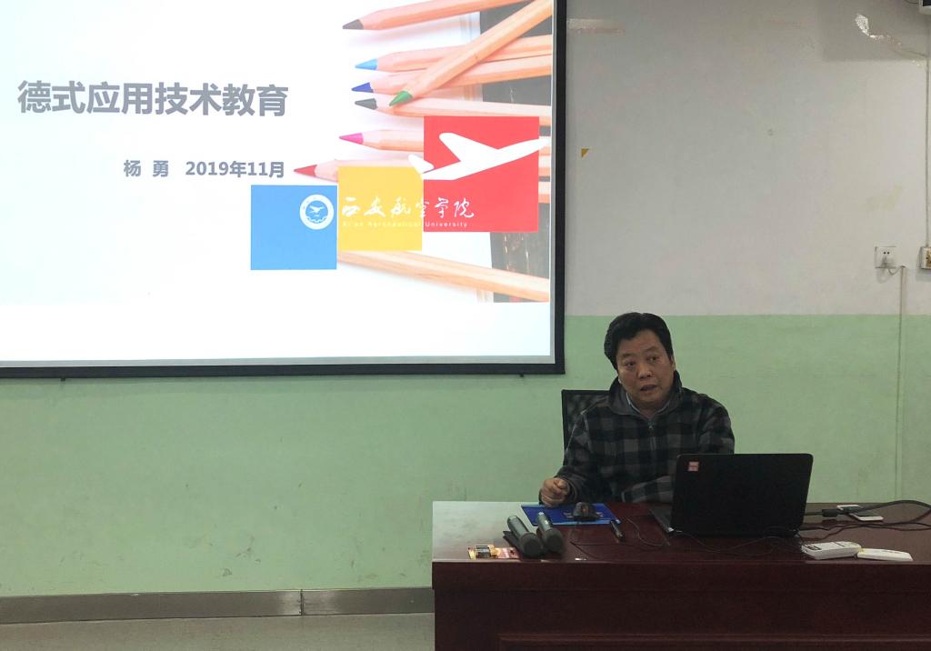 近日,由教师发展中心、电子工程学院和国际合作与交流处共同举办的教学名师风采讲堂报告会在沣惠校区举行,陕西省教学名师、万博官网电子工程学院院长杨勇教授以《德式应用技术教育》为题作专题报告,学校100余名教师聆听了报告会。