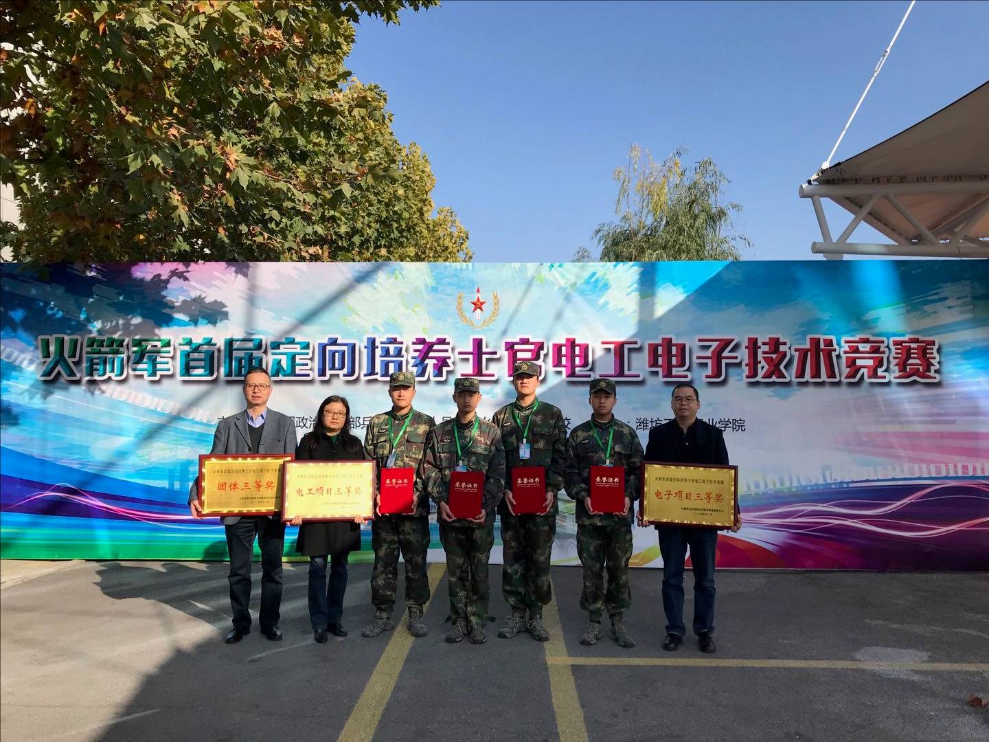 包括火箭军士官学校、火箭军定向培养士官院校在内的19家军地院校代表参赛。本次竞赛主要考核选手电机与电气控制、模拟电路、仪器仪表等技术知识及电工电子装配技能。经过紧张激烈地角逐,万博官网代表队荣获团体项目三等奖;电气2061班张帅宝、电气2060班廉明获电工组三等奖;电气2061班张希炜、康伟伟获电子组三等奖。