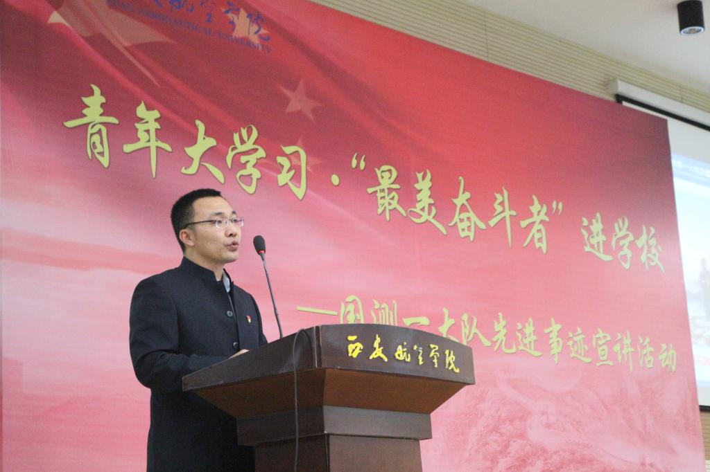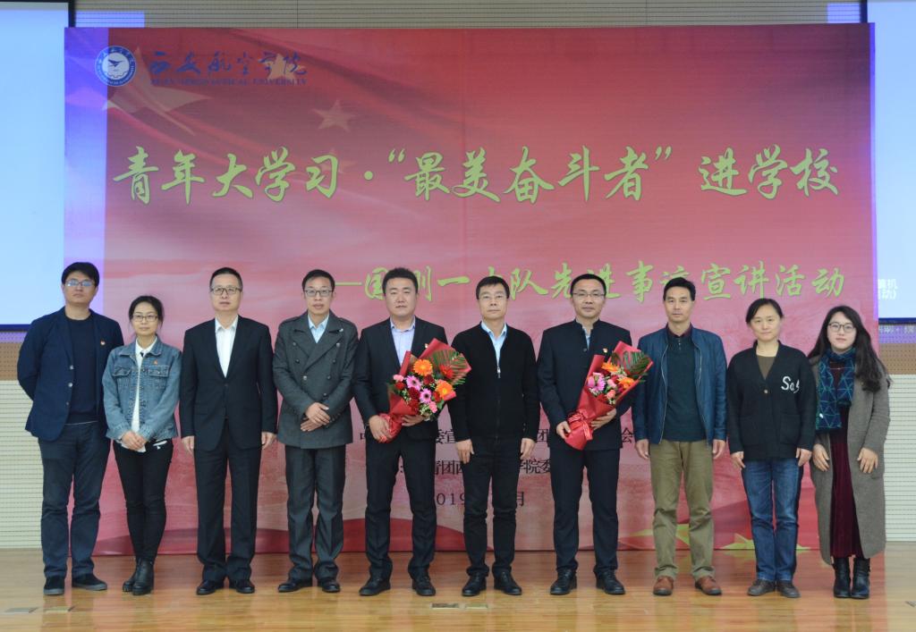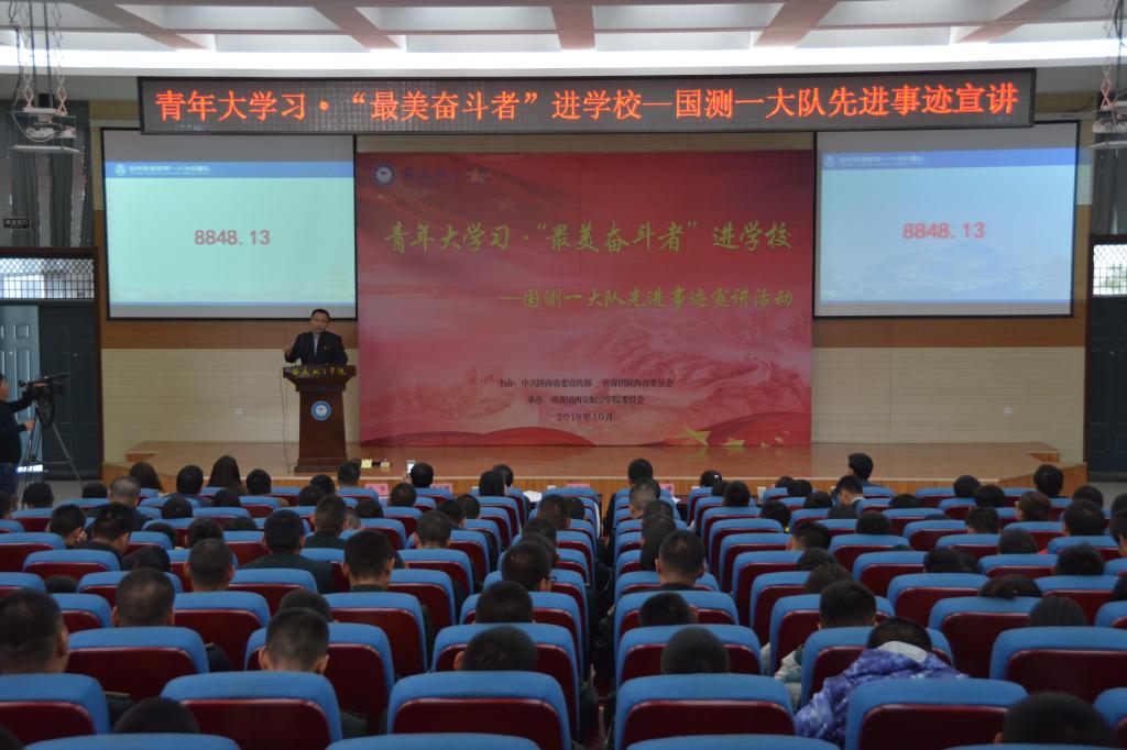 10月29日下午,由中共陕西省委宣传部、共青团陕西省委员会联合主办,万博max体育官网入口承办的青年大学习•“最美奋斗者”进学校——国测一大队先进事迹宣讲活动于万博官网阎良校区报告厅举行。学校党委宣传部、校团委等部门负责人、各二级学院党总支书记、团总支书记、校“青年马克思主义者”大学生骨干培训班学员、习近平新时代中国特色社会主义思想学习读书会成员、学生入党积极分子等近400人参加了宣讲会。宣讲会由校团委副书记季林健主持。