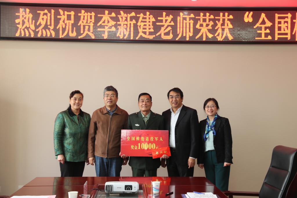 巨小弟指出,在今年7月26日召开的在全国退役军人工作会议上,人力资源和社会保障部、中共中央组织部、退役军人事务部、中央军委政治工作部等军地相关部门联合表彰张富清等401名同志为“全国模范退役军人”。此次表彰中,我省共有13名同志荣获“全国模范退役军人”称号,李新建老师作为其中一员,是退役军人中的优秀代表,为广大退役军人树立了标杆。希望李新建老师继续保持初心,离军不离党、退役不褪色,继续发挥部队的优良传统;也希望学校学习模范、关心模范,在全校形成良好的学习氛围,促进学校各项事业的发展。