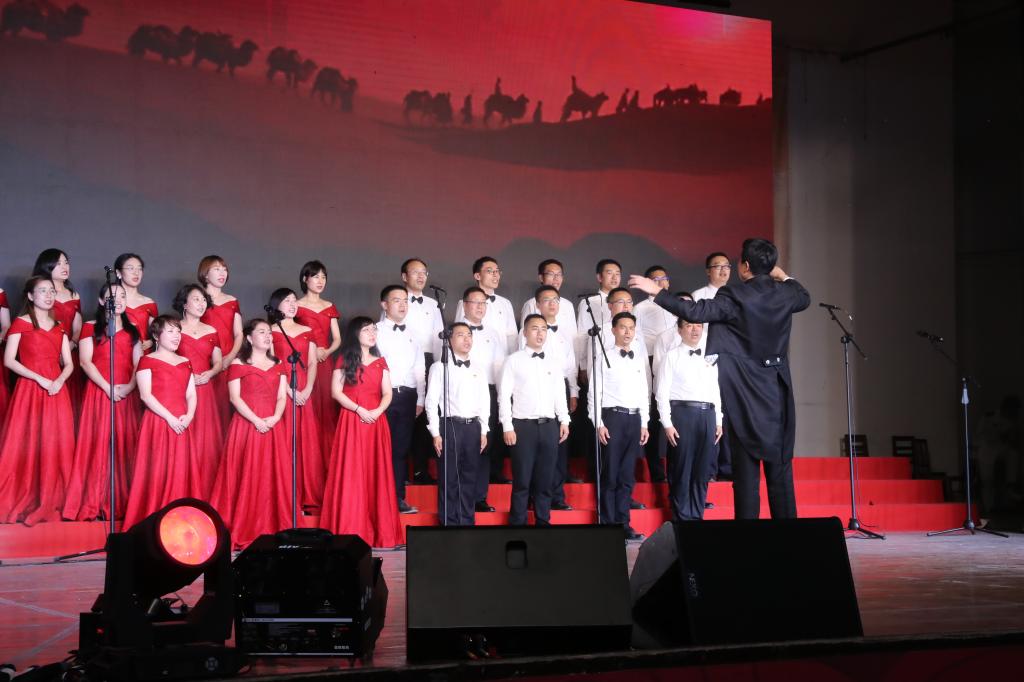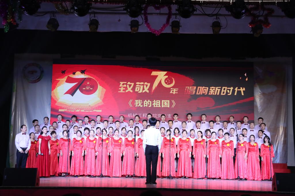 一首首鼓舞人心、催人奋进的歌曲,热情讴歌了伟大祖国七十年艰苦跋涉历经风雨沧桑,七十年不倦探索收获累累硕果。在活动中,各支队伍表演形式新颖独特,采用领诵、领唱、伴舞、伴奏等多种艺术形式,用歌声表达出西航人对党、国家和学校的由衷赞美和无比热爱,表现出西航人重任在肩、使命在心,与祖国共同走向复兴,创造辉煌的坚定信念。表演或慷慨激昂,或优美柔和,使在场的观众感慨万分、心潮澎湃,赢得了台下观众们阵阵掌声。活动最后,学校领导与师生们一同演唱了《我们走在大路上》。