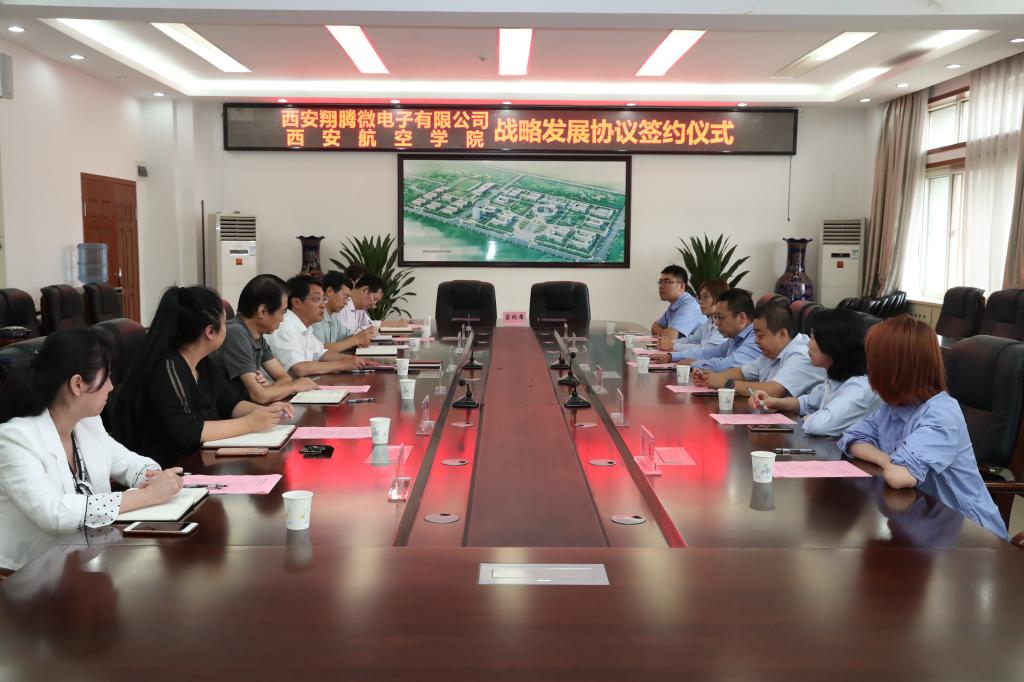 9月12日上午,万博官网与西安翔腾微电子科技有限公司战略发展协议签约仪式在沣惠校区举行。西安翔腾微电子科技有限公司总经理田泽、总监邵刚,万博官网校长曹庆年、副校长宋文学,教务处、计算机学院、电子工程学院相关负责人等出席了签约仪式。签约仪式由宋文学主持。
