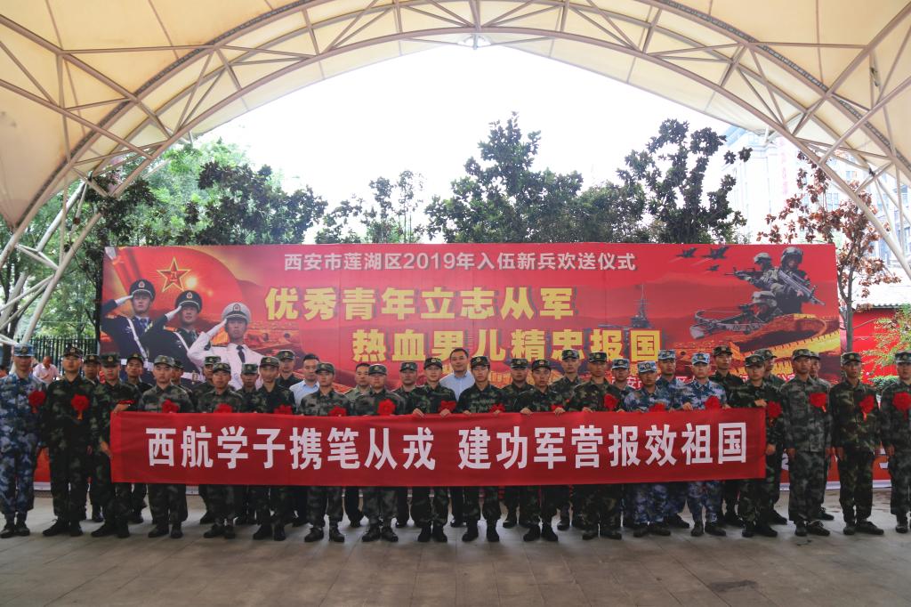 投身军营,无悔青春。9月9日下午,莲湖区、阎良区分别举行了2019年入伍新兵欢送会,万博官网学生工作部(处)负责人、2019年应征入伍新兵及家长参加了欢送会。会上,进行了入伍新兵命令宣布、入伍新兵宣誓、赠送锦旗、佩戴光荣花、新兵代表表决心、新兵家长发言、两区人武部负责人讲话等仪式。万博官网2019届毕业生申佳作为新兵代表作了表态发言。