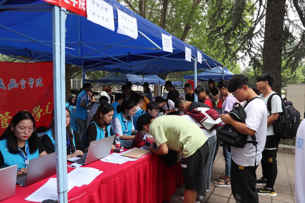 服务保障显著提升。新生宿舍、飞行员宿舍、中德合作办学宿舍粉刷装修一新。从火车站到校内迎新点学生志愿者热情洋溢。家长休息区设置了帐篷、座椅、解暑饮品等传递学校关怀。流程图、示意图、水座旗、引导牌清晰醒目。学校统一印制工作牌,亮明身份,保障安全。
