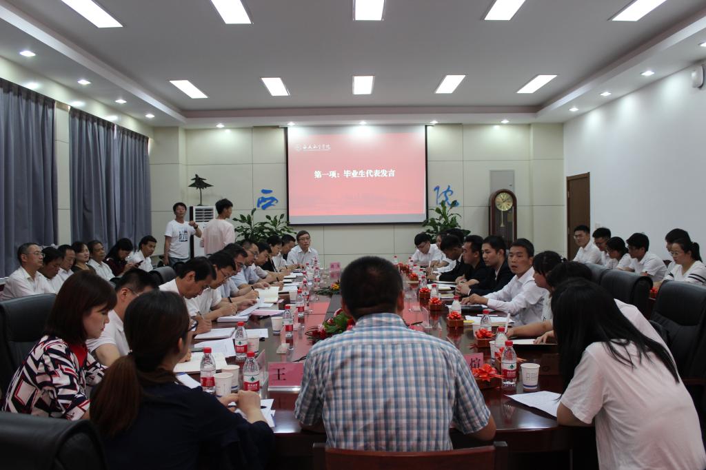 刘舟、王丹两位教师为毕业生们送上了临别赠言和美好祝福。教务处处长米国际、招生就业处处长王坚、能源与建筑学院党总支书记刘剑坤代表职能部门和二级学院对同学们心系学校发展提出的意见和建议表达了感谢,并表示将不断深化体制机制改革,着力优化内部管理,不断向同学们心中满意的大学迈进。