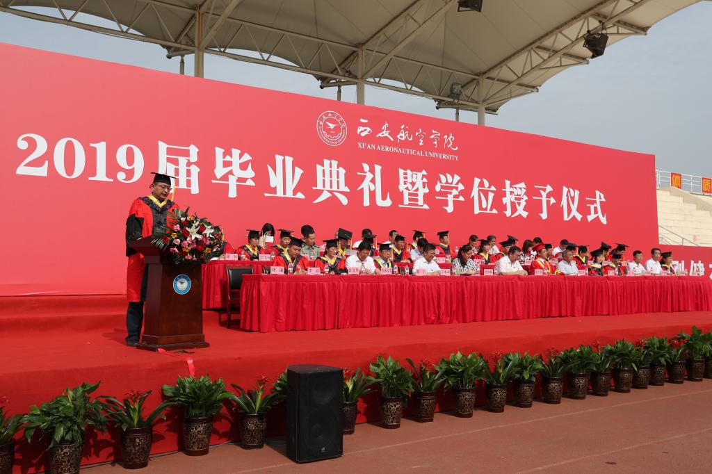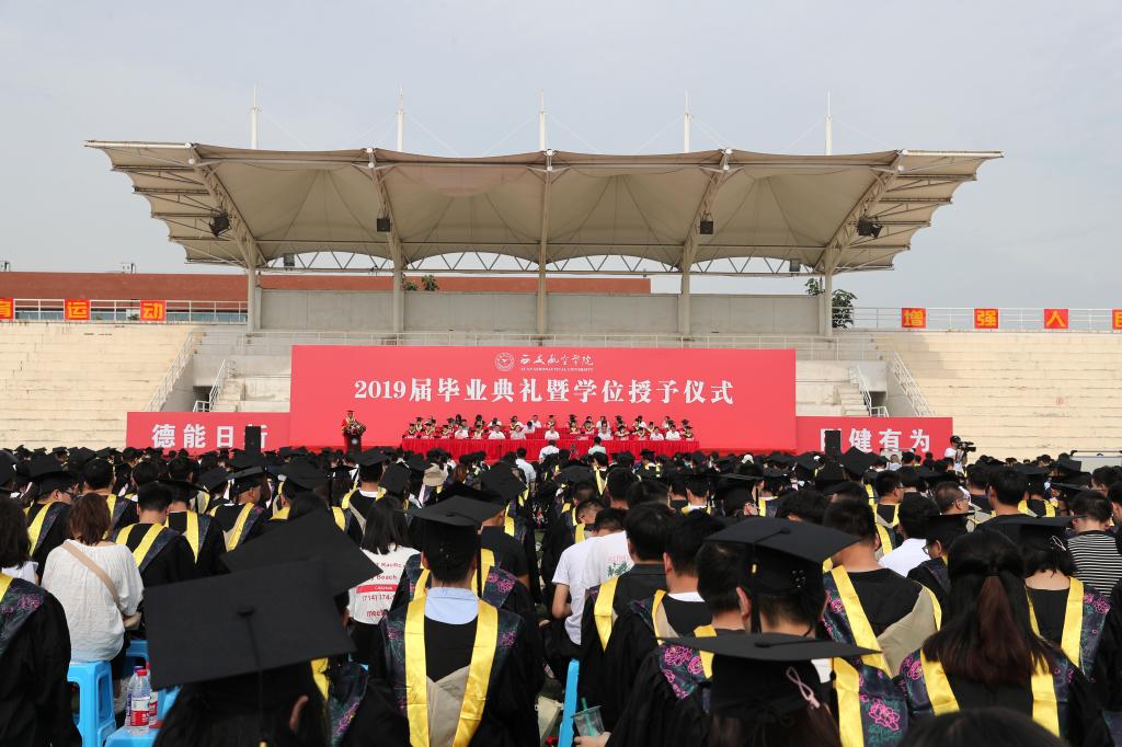 7月3日上午,万博max体育官网入口2019届毕业典礼暨学位授予仪式在阎良校区田径运动场隆重举行。校领导、学校学位评定委员会成员、教师代表、毕业生家长代表、2019届毕业生等1500余人参加了典礼。典礼由党委副书记刘谦主持。