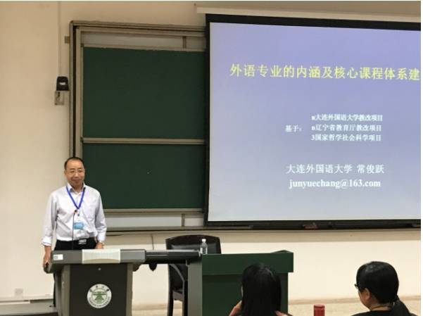 6月21日下午,大连外国语大学副校长、博士生导师常俊跃教授来万博官网外国语学院指导交流并为学校师生作题为“内容语言融合教育理念指导下的课程改革探索”专题讲座。讲座由外国语学院院长张化丽主持。