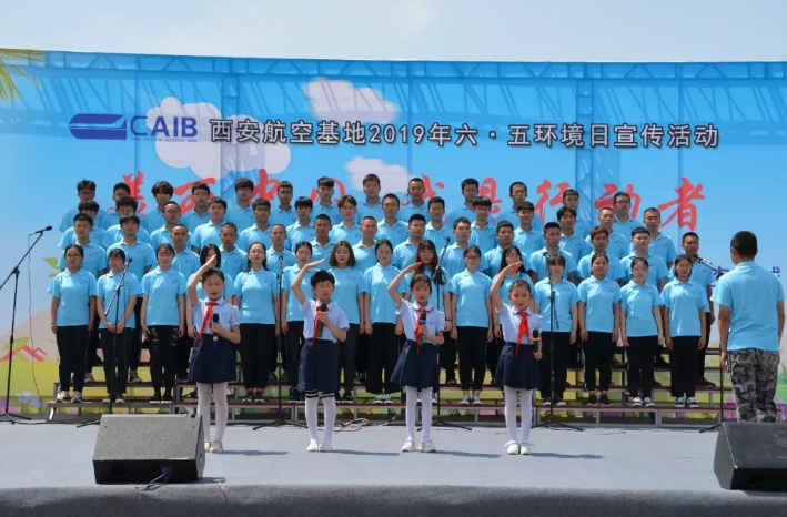 机械工程学院机械设计182班韩小虎同学代表环保志愿者作了发言,学校合唱团与航空基地一小学生代表共同为活动带来大合唱《让中国更美丽》,与会领导嘉宾与环保志愿者们共同签名留念。