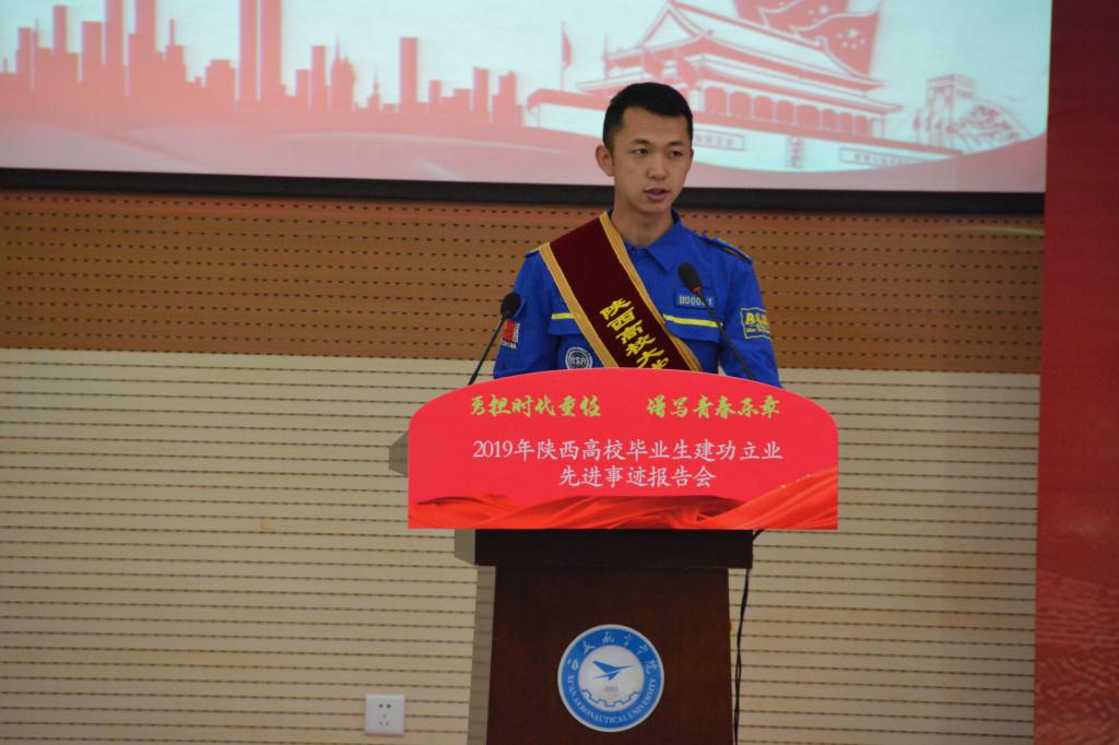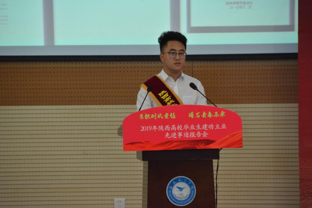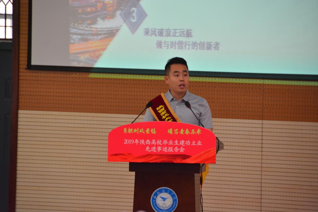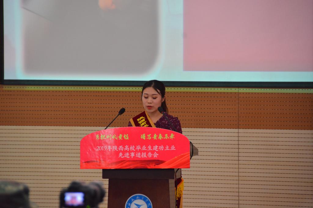 大会在庄严的国歌声中开幕。在观看2019陕西高校毕业生建功立业先进事迹宣传片后,西安外国语大学2013届毕业生张文妮、西北大学2016届毕业生孔庆炜、西安邮电大学2016届毕业生胡世杨、西安外事学院2015届毕业生於若飞等4位报告团成员用真实的故事、生动的语言、深刻的感悟,从创新创业、脱贫攻坚、公益救援等不同角度讲述了自己在各自领域建功立业的体会和经验。无论是第一书记张文妮带领榆树村脱贫攻坚的基层经历,还是孔庆炜、胡世杨鹏程万里今朝始的创新创业历程,又或是於若飞连续3年5500小时坚持公益救援的奉献精神,一个个生动感人的事例,一句句饱含真情的话语,无不感动着在场的每一名师生,会场不时响起热烈的掌声。
