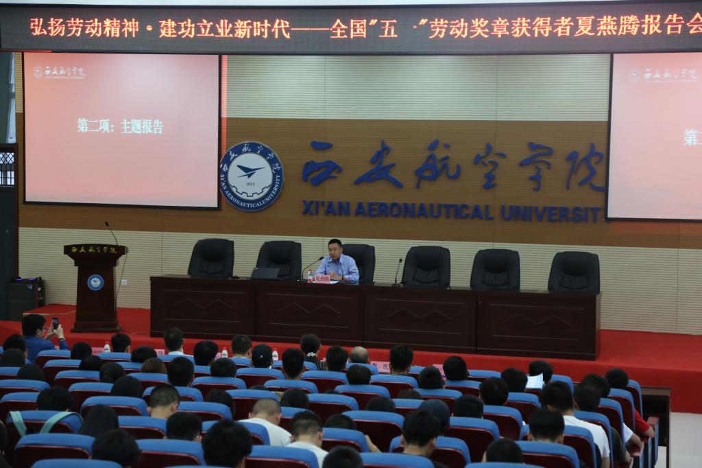 5月16日,全国“五一”劳动奖章获得者、万博官网优秀校友、中国飞行试验研究院中飞通用航空有限责任公司维修部技术室主任夏燕腾应邀在阎良校区为万博官网师生做“弘扬劳动精神·建功立业新时代”主题报告。学生工作部(处)、后勤保障处、阎良校区各二级学院负责人、辅导员及学生代表300余人参加了报告会。报告会由学生处副处长赵琳主持。