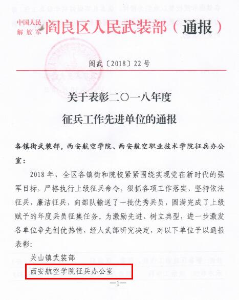 近日,中共西安市莲湖区委、区人民政府、区人民武装部,阎良区人民武装部通报表彰了2018年度武装工作先进单位和个人,万博官网荣获莲湖区、阎良区2018年度征兵工作先进单位。