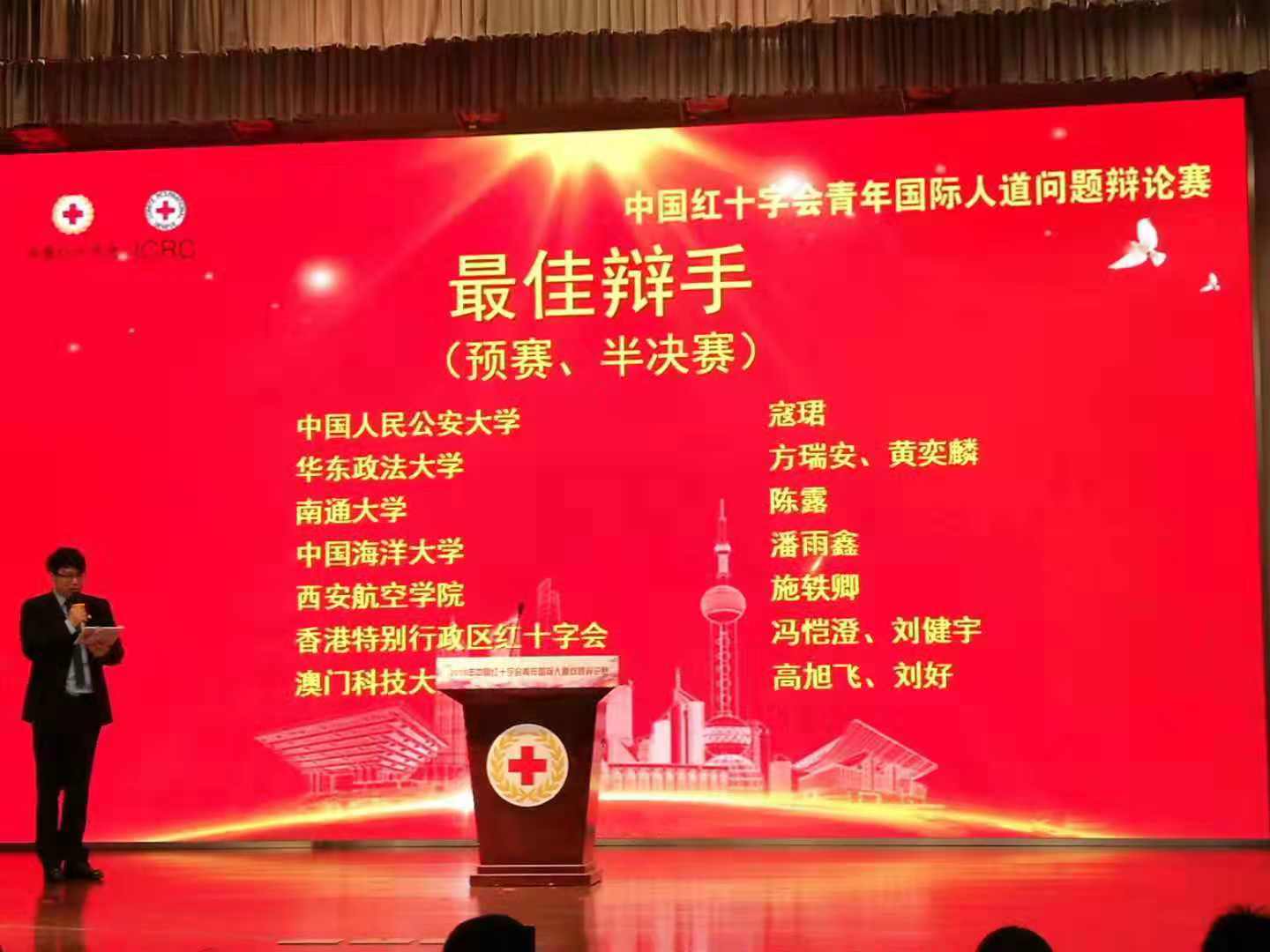 11月24日—25日,2018中国红十字会青年国际人道问题辩论赛在上海成功举办。本次辩论赛由红十字国际委员会、中国红十字会总会主办,上海市红十字会承办。万博官网红十字青年骨干代表陕西省与来自北京、上海、浙江、江苏、山东及香港特别行政区和澳门特别行政区的8支代表队在黄浦江畔共话人道,围绕人道援助、武装冲突、普及国际人道法等相关辩题展开精彩对决。经过激烈角逐,万博官网经济管理学院物流管理2104班施轶卿获得2018中国红十字会青年国际人道问题辩论赛最佳辩手,万博官网代表队获得2018中国红十字会青年国际人道问题辩论赛优秀奖。