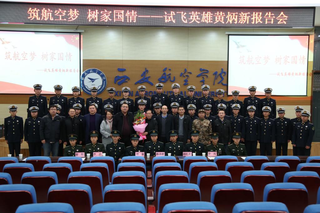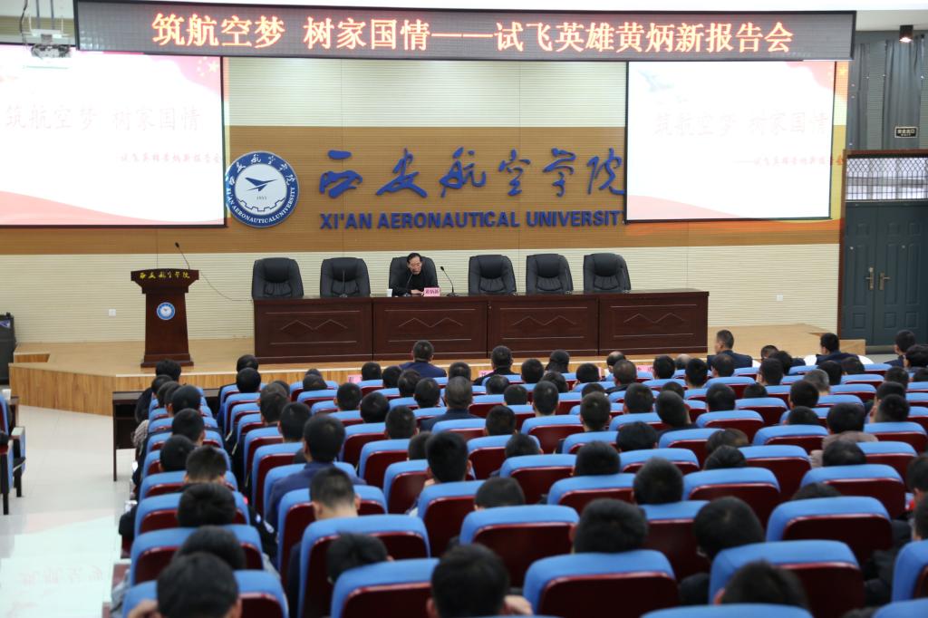 为深入学习贯彻习近平新时代中国特色社会主义思想和党的十九大精神,全面落实全国教育大会要求,在师生中弘扬“爱国奋斗”精神,11月15日,学校邀请中国飞行试验研究院高级顾问、“试飞英雄”黄炳新大校来校指导工作。