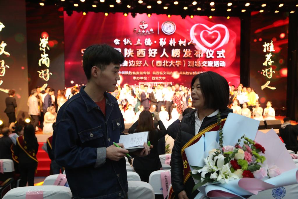 11月2日,由中共陕西省委宣传部、陕西省文明办、中共陕西省高教工委主办,西北大学承办的“9-10月陕西好人榜发布仪式暨道德模范与身边好人(西北大学)现场交流活动”于西北大学长安校区隆重举行。万博官网党委宣传部部长李永刚,2016届毕业生、陕西好人张妮应邀参加了本次活动。