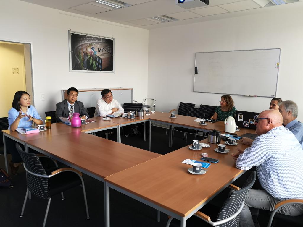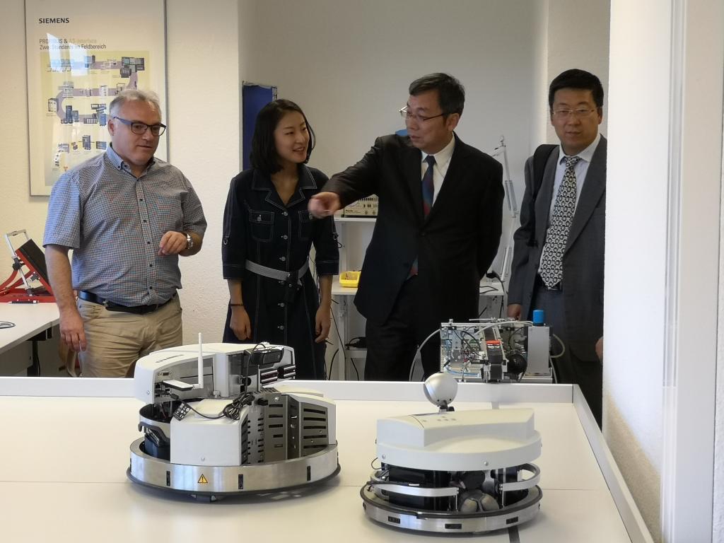 9月19日,万博官网代表团访问了德国不莱梅应用技术大学。该校航空航天技术研究院院长Steckemetz教授对万博官网代表团一行的首次访问表示热烈欢迎,双方分别就两校的历史沿革和特色、学科与专业现状以及国际合作项目进行了广泛深入的沟通,表示愿在学术交流、科研工作方面开展合作。