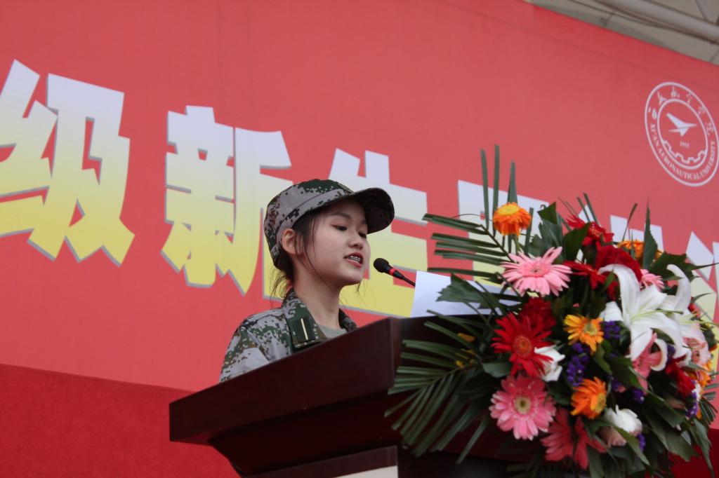 飞行器学院飞行器动力工程181班的周欣宇、人文学院文秘181班的党博雅作为优秀学员代表发言,抒发了对军训生活的深刻感悟和对大学生活的美好憧憬。