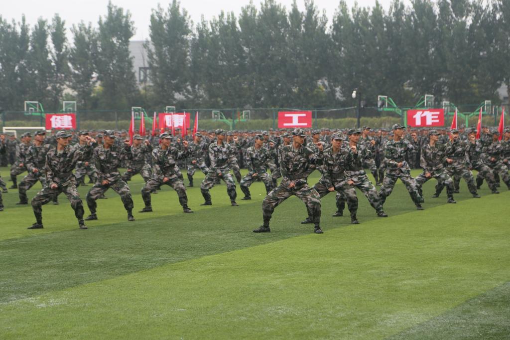 军训汇报演出暨总结表彰大会在庄严的国歌声中拉开帷幕。参训学生精神抖擞、士气高昂,全面展示了14天来的训练成果。分列式表演在铿锵的解放军进行曲中进行,所有方队军姿整齐、口号响亮,迈着矫健的步伐通过主席台,接受与会领导的检阅。军体拳表演队伍声势浩大,场面气势恢宏,动作整齐划一。刺杀操表演刚劲有力,同学们神情严肃、喊声震天,尽显谁与争锋的英雄气概。反恐演练展现了一支沉着冷静、训练有素的铁血之师。