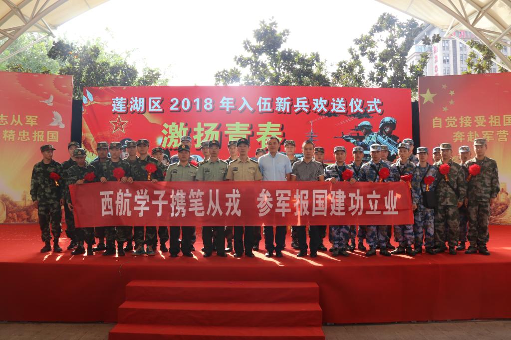 国无防不立,民无兵不安。9月9日下午,莲湖区、阎良区分别举行了2018年入伍新兵欢送会,两个区人民政府武装部负责人、万博官网学生工作部(处)部长李波、两校区征兵负责人,万博官网2018年应征入伍的48名新兵及家长参加了欢送会。