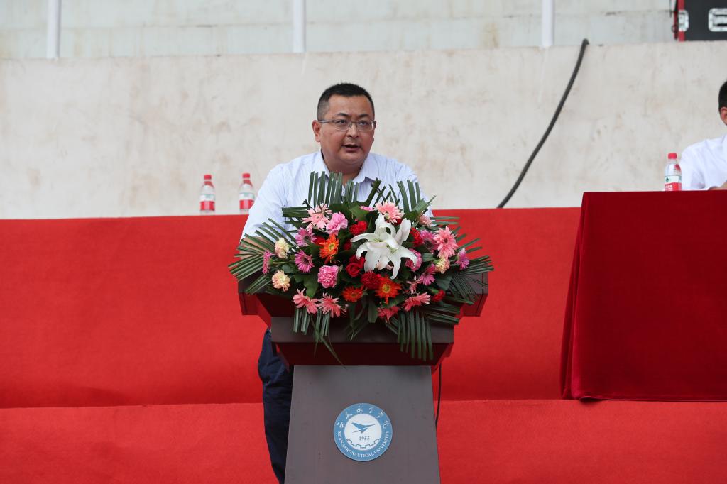 机械工程学院机器人128班张世新同学代表2018级新生发言,表示将以“德能日新,刚健有为”的校训要求自己,以“严谨求实 勤奋 创新”的校风鞭策自己,为实现航空报国的理想努力奋斗。