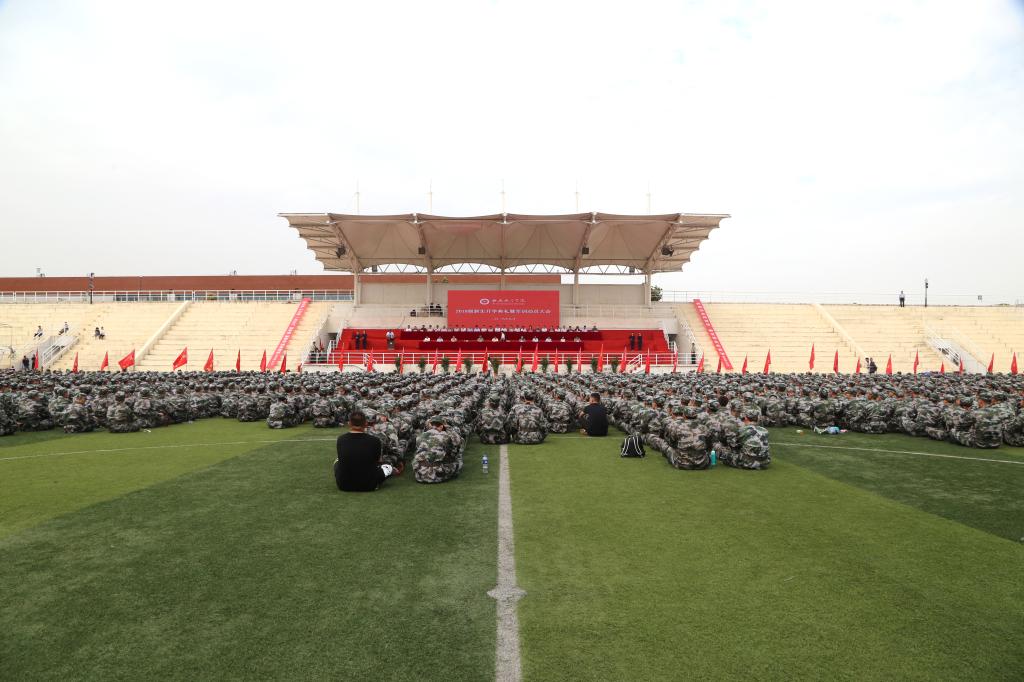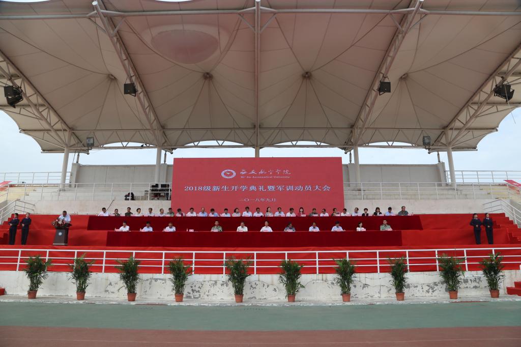 2018级新生开学典礼暨军训动员大会在激昂的中国人民解放军军歌中圆满落幕。