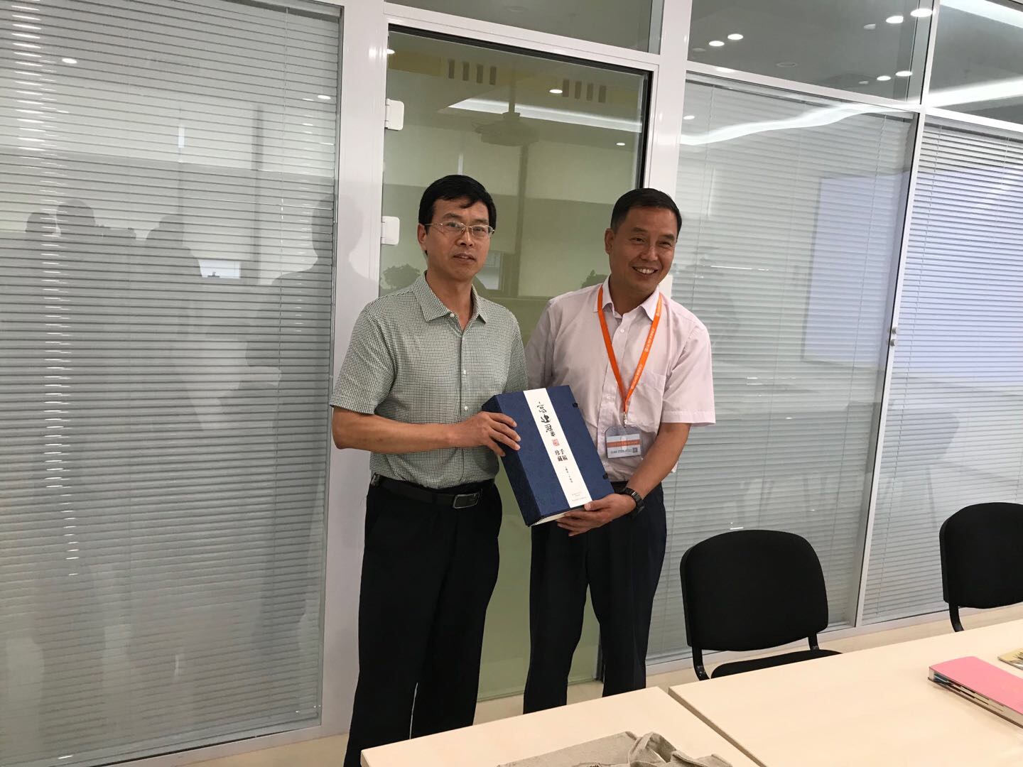 宋文学代表学校向奥凯航空公司总裁高级助理李庆忠赠书