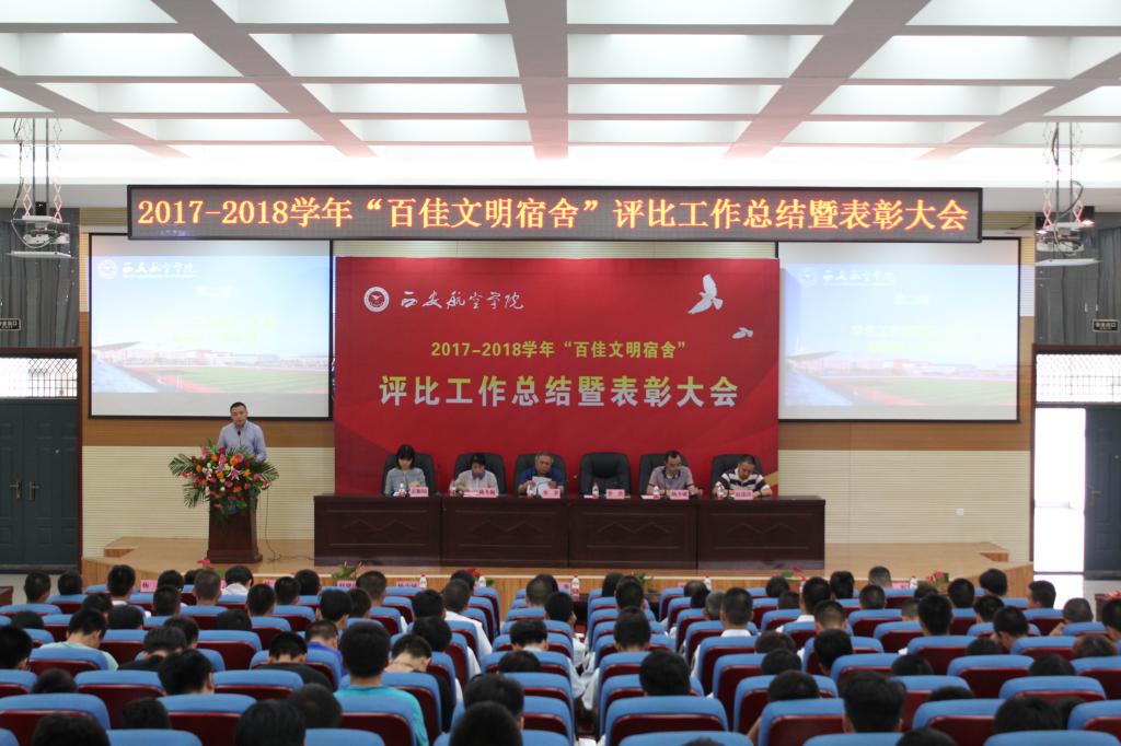 为充分发挥公寓文化育人功能,引导同学们积极创建温馨舒适的学习、生活环境,创建和谐文明宿舍和文明校园,6月26日下午,学校在阎良校区报告厅隆重召开2017-2018学年“百佳文明宿舍”评比工作总结暨表彰大会。副校长李季出席活动并讲话,学生工作部(处)、后勤保障处、教务处、保卫处等职能部门负责人、各二级学院党总支书记、学生管理科科长、辅导员及学生代表等350余人参加了表彰大会。大会由学生工作部副部长雷颖颐主持。
