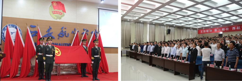 大会在庄严雄伟的国歌声中拉开帷幕。西航学子面对团旗庄严宣誓,回顾入团仪式,重温入团誓词,缅怀革命先烈。