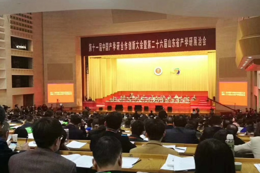 11月12日,第十一届中国产学研合作创新大会暨第二十六届山东省产学研展洽会在山东大厦山东会堂召开。本次大会由中国产学研合作促进会常务副会长、全国政协教科文卫体委员会副主任陈小娅主持。十二届全国政协副主席、科技部部长、中国科协主席万钢和教育部副部长孙尧分别致辞。全国人大原副委员长、中国产学研合作促进会会长路甬祥院士发表重要讲话。来自全国企业界、研究院所和高校等单位的1000余名代表参加会议。会议通过了旨在强化创新驱动、激发全社会创新创业活力的《济南宣言》。